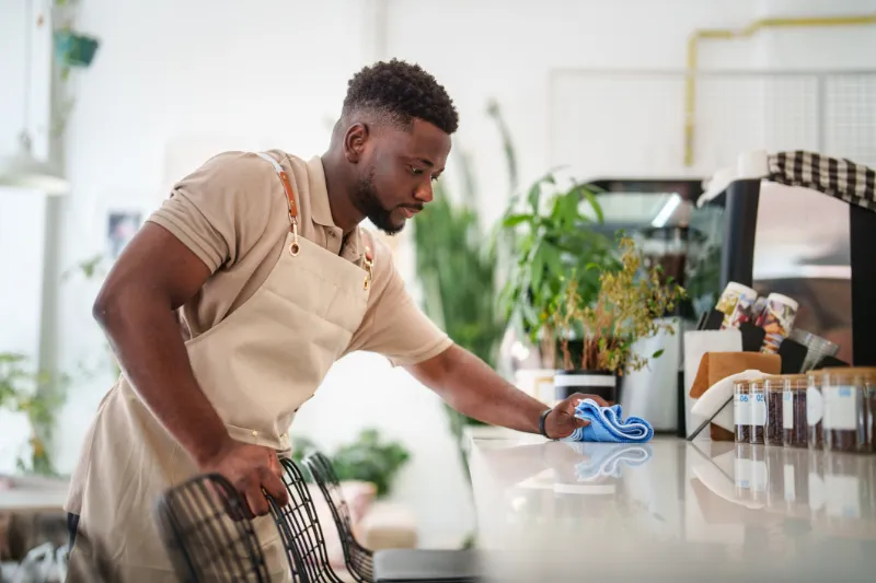 Because retail environments are busy and have many touch points, there is a higher chance of germs and infections spreading. Thus, every time we clean, infection control comes first.